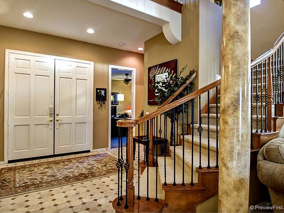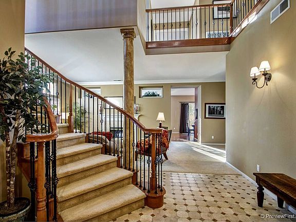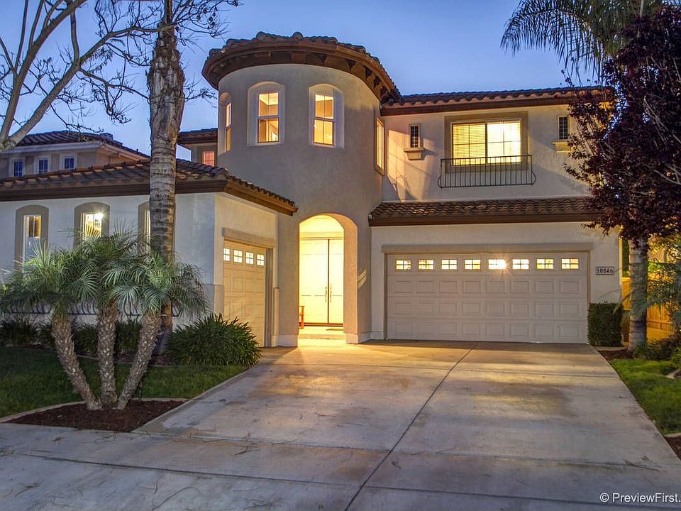 Step inside to your gorgeous new home in the beautiful & desirable Belmont community. Boosting with pride of ownership step into this spectacular home with its hardwood floors, crown molding, cathedral ceilings & sweeping staircase inviting you in. The Gourmet open kitchen features endless counter space, granite countertops, walk in pantry, custom backsplash, spacious island and recessed lighting. A chef's dream! Carmel Country Highlands Area & sought after Sage Canyon School district. First floor has one bedroom and full bathroom - great for a guest room or office space. Spacious formal dining room and living room. Dual sided gas /wood fireplace between family room and living room - downstairs is bright and cozy throughout. Step outside to your Hallmark Pool and Spa's Custom built Pool/Jacuzzi with waterfall and custom outdoor kitchen with Viking BBQ, Viking Fridge and sink for those wonderful warm San Diego nights. Plenty of space for the outdoor entertainer here. Walk up your sweeping staircase to the 2nd story to the open and large extra room that could be used as game room/office/exercise room/playroom - you decide! Your master retreat invites you in with plenty of sitting room, a cozy fireplace, spacious two sided walk in closets and large soaking tub. Additional upgrades and bonuses throughout the home include dual zoned a/c unit, Dual paned windows and doors, plantation shutters, whole house wired with Ethernet & dual coaxial cable, 2 gas fireplaces ( LR fireplace is gas & wood burning) Epoxy garage floors, large laundry room with extra built in cabinets for storage. Large and open extra room on 2nd story could be used as game room/office/exercise room/playroom - you decide!