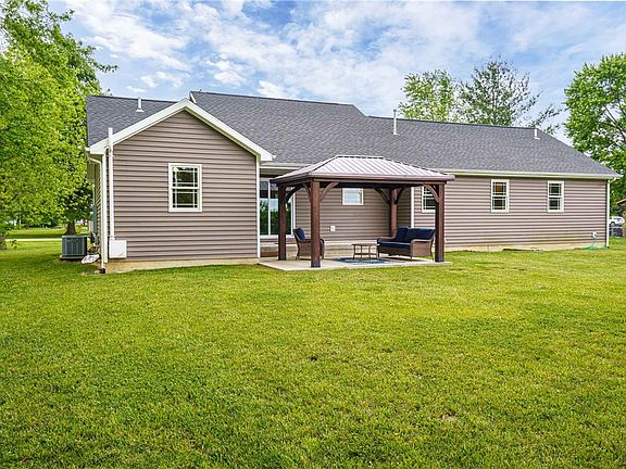 This open concept Ranch home is just like "new"! One owner home first occupied 2/13/19. Located on a .63 acre lot in Grupe Subdivision only minutes NW of Effingham. You'll walk into the home to an open Living, Dining, and Kitchen! The Kitchen features an Island with bar stool seating. The White cabinets feature soft close drawers and doors. From the Dining area you can step out to the covered back porch and then access to a patio with Gazebo! This home features a split bedroom plan with Bedrooms 2&3 on the east side of the home with a full bath in between. The Master on the opposite side of the home features a large Master Bath with custom tiled shower, jetted tub, dual vanities and a walk in closet. Through out the home you will notice raised panel doors, and elegant trim. The Luxury Vinyl Plank flooring throughout is very durable and waterproof! The Basement has 9' poured walls and is plumbed for a 3rd Bath, and has an egress window for possible 4th Bedroom.