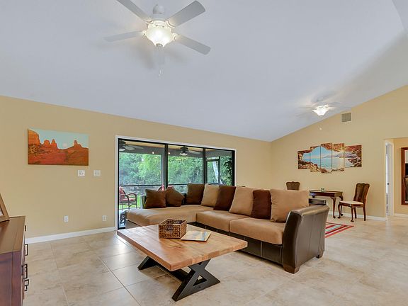 Three bedroom, two bath home on 1.25 scenic acres with large back porch overlooking a private lake, lush landscape and mature citrus trees. Charming, winding driveway and tucked in private, woodsy feel. Paved road! NEW Carrier AC, RO water system, gutters and perimeter fence!
