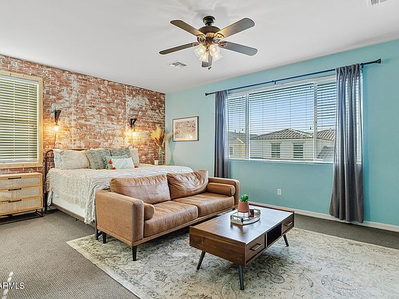 Step into modern elegance with this stunning home featuring an adorable curb appeal, inviting you in with its charming front porch. Inside, discover a beautifully appointed kitchen boasting quartz countertops, stainless steel appliances, and upgraded pendant lights, along with a large pantry offering ample storage space for all your culinary essentials. Convenience meets luxury with a first-floor ensuite, perfect for guests or multi-generational living. Ascend the stairs to discover the spacious primary suite adorned with a charming brick accent wall, complemented by a super shower tiled to the ceiling, dual vanity, and an abundance of natural light. Berber carpet adds comfort to each bedroom, creating cozy retreats for rest and relaxation. (CLICK TO READ MORE) The backyard beckons with mature landscaping and lush real grass, providing a serene outdoor oasis for leisure and entertaining. Just like a world-class resort, this community offers a luxurious community pool, splash pads, numerous parks spread throughout, the Steadfast farm, the Handlebar Diner, and its very own state-of-the-art clubhouse "The Mark". The Mark hosts events throughout the year and a wide variety of family-friendly games to play. Experience refined living in every detail of this impeccable home.