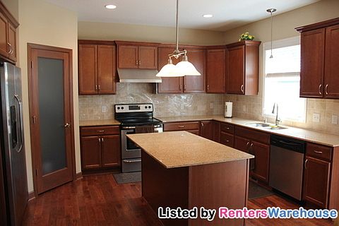 Renters Warehouse presents this stunning 4 BR / 3.5 BA / 2311 SQ FT home off 35W and 106th in Bloomington. The beautiful home, built in 2012, features gorgeous hardwood floors throughout open main level; living room w/ gas fireplace; office/den; large kitchen w/ matching SS appliances, granite counters + large walk-in pantry! All 4 BR's + W/D on upper level. Master suite boasts private bath w/ jacuzzi tub + walk-in closet. Huge unfinished basement, perfect for kids play area. Large yard on wooded lot. Tenant responsible for all utilities + snow/lawn. Pets OK w/ extra deposit. Available 8/23. Call Joe at 612-314-5505 to schedule a showing!