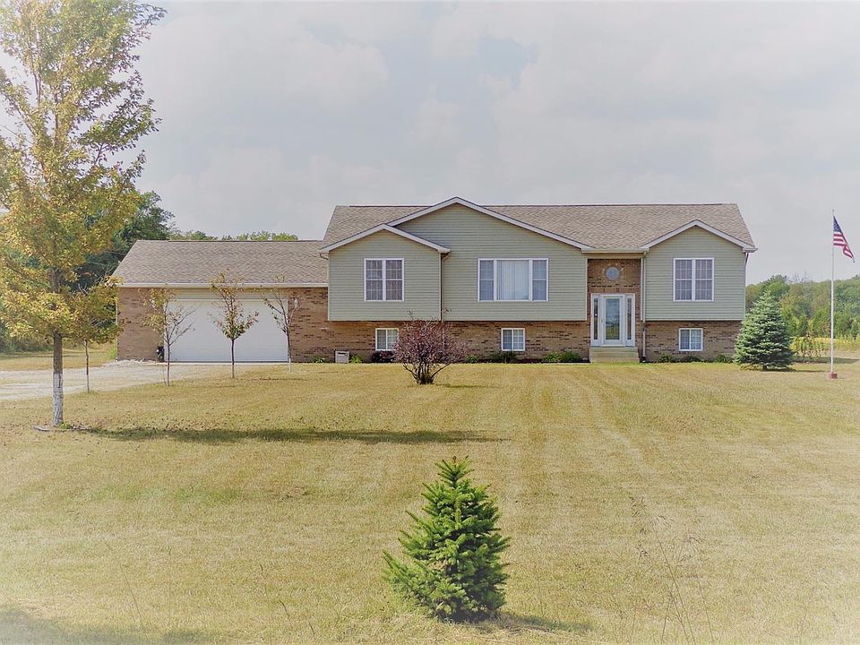 6 Country Acres with POND - Open Concept 3 Bedroom and 3 Bath split floor plan Bilevel. Vaulted Living Room, Dining and Kitchen with plant shelves, recessed lighting, refrigerator and range. Master Suite has walk in closet and 4 ft. shower with seat. Main level Laundry with washer, dryer and built in cabinets. Lower level has day light windows and possible 4th Bedroom and is accessible from main entrance and heated 2.5 car Garage.