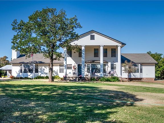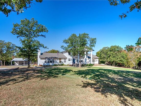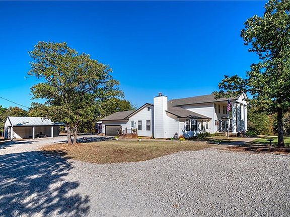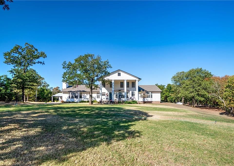 Need space! This gorgeous 5 bed 3 bath white vinyl sided home is perfectly situated on a black top road that is 1.2 miles from HWY 62. The home is on a mostly wooded 20 acres with private gated entrance and perfectly maintained drive into a park like setting with plenty of wildlife, 30X20 shop with lien-to, 3 car covered parking plus storage building. The front porch with nice columns is a perfect place to sit and enjoy the peace and quiet. This beautiful home contains an attached 2 car garage, two huge living areas, nice open kitchen, 2 bedrooms, 2.5 baths, laundry room and an office downstairs. There are 3 bed one bath upstairs plus additional washer and dryer hookups. Schedule your appointment today to view this great property!
