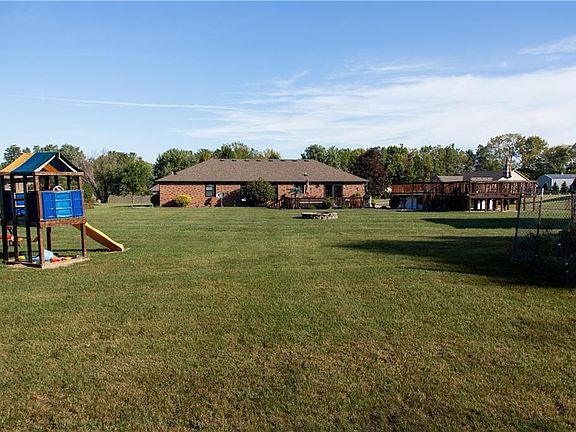 CUSTOM BUILT BRICK RANCH! PRIVATE .79 ACRE HOMESITE! FEATURES: 22 x 15 great room with cathedral ceiling, ventless fireplace, oversized eat in kitchen, newer stainless appliances, new bathroom vanities, large 25 x 25 rear deck with included hot tub, 16 x 12 storage shed with loft, oversized 29 x 25 insulated garage with service door & cement walk, fire pit, fenced garden area, backs up to woods, etc... Seller thinks roof and HVAC both redone within the last 10 years. Nice rural feel to this subdivision, but close to airport, interstates and shopping! NO HOA. Camby address, but Plainfield schools!