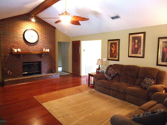 Wow! Great 4 bedroom Brick home in Mandarin with New Roof, Real Hardwood Floors & a Large Private backyard with Screened Lanai to enjoy! Spacious Family Rm boasts Beautiful Hardwood Floors, upgraded Fan, windows to the backyard and accented Brick wall w/wood burning Fireplace! Family Rm opens to nice sized Kitchen w/Eat-in area,with wall mounted TV that stays, 30'' cabinets & large pantry! Formal Living & Dining Rm have 2 long window seats with view of lake across the street! Master Bedroom has vaulted ceiling with wood beam too! Double sinks in the Bath with Tub/shower combo & large walk-in closet. Split bedroom floorplan with bedroom 2 & 3 having window seats too! Enjoy your Screened Lanai while watching kids play outside in your Private Fenced Backyard. (Plenty of room for a Pool)