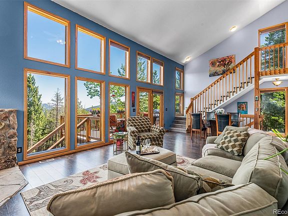 Beautifully situated on Shadow Mountain with lovely views of the foothills, this wooded lot at the end of the road provides ultimate seclusion. The main living space has an open floorpan, great for entertaining, with vaulted ceilings and large windows allowing for ample sunlight. A huge upper-level master bedroom has vaulted ceilings and convenient ensuite bath along with a oversized walk-in closet. The lower level features a large family or media room and walk-out deck for wildlife watching. The sellers have meticulously maintained this home for years and have recently added updates such as high-end laminate flooring and pet-protected carpet throughout. The newly upgraded low maintenance decking on the main and lower levels offer additional outdoor living space and stunning views of the foothills. This home is conveniently located near the amenities that Conifer offers while also allowing quick access to 285.