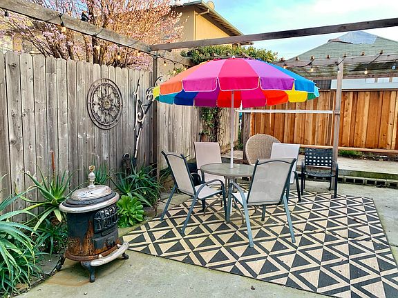 Live in a beautifully furnished Victorian junior 1bdrm, with a large fully stocked kitchen and huge patio. Flowers, hummingbirds, and fruit trees surround the quiet house, near transit and in walking or short driving distance to restaurants, shops, and more. The apartment features deluxe furnishings and amenities including: - Purple brand queen mattress - Temperpedic memory foam pillows - High-speed fiber internet - Modern kitchen appliances including dishwasher and slow-cooker - Washer/dryer - Full shower/bath - Expansive closet + storage space - Large patio & outdoor space - Fresh figs, nectarines, plums, and peaches growing on the property - Victorian chaise lounge and wingback chair for relaxing - Blackout bedroom curtains - All utilities included The unit is one of three in a historic 1900 Victorian; the other two units are filled with a welcoming, tight-knit queer community (and adorable tiny dog). Outdoor space and laundry are shared with other units. The house is on a quiet street at the Emeryville/North Oakland border, near the vibrant Longfellow and Temescal neighborhoods. A park and basketball court are less than a block away. The free Emery-go-round shuttle to BART picks up at the end of the block, as do AC Transit bus lines. Street parking is plentiful and has no hourly restrictions. **THIS IS A 5-MONTH LEASE** with no possibility of renewal; move-out is August 1. 5 months lease with no possibility for renewal, move-out Aug 1. Owner pays all utilities. No tobacco smoking anywhere on the property. $200 cleaning fee after move-out automatically removed from deposit unless professionally cleaned.
