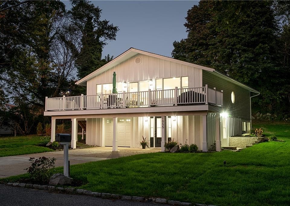 Enjoy breathtaking sunsets and panoramic water views from this stunning, fully renovated home nestled along the shores of Mt. Hope Bay near Safe Harbor Marina and Seaconnet Sportman's Club. This spacious 3 bedrooms and additional first level guest quarters residence offers a versatile floor plan ideal for year-round living or a serene coastal getaway. The first level features a living room complete with a dry bar, guest quarters with den and access to a private backyard, ample storage, & beautifully appointed full bathroom with laundry. Upstairs, the living area with sweeping views of the bay and gourmet kitchen equipped with Thor stainless steel appliances, quartz countertops, & large island with breakfast bar, are flooded with natural light. Sliding doors open to an expansive deck overlooking the water & salt marsh. This level also includes two bedrooms that share a marble bathroom & a principal suite offering a peaceful retreat with three closets and a beautiful ensuite featuring elegant finishes. Additional highlights are one car garage, ample parking, updated 3 bedroom septic system, new HVAC. Set on a nearly half-acre with mature trees, this home is just minutes to charming Bristol & Tiverton, about 10 miles to Newport, and an easy drive to Boston. Whether you're looking for tranquility, convenience, or a true connection to the Rhode Island coast, this home delivers an exceptional lifestyle. ________________________________________