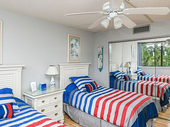 Newly remodeled in October of 2019, appliances new with 5 yr warranty. Two large balconies (6.5 X 23) with furniture. Living and dining room are lined with floor to ceiling sliding doors, lots of light. Vertical blinds on all sliders. Both bedrooms/baths are "separated" from each other and away from the main living areas (nice privacy). Full size washer/dry in unit. Great home for beach living, or great investment/rental with $40K of committed rentals (VRBO). If your desire is a rental property, owner will assist with transition to ensure all renters stay. One covered parking space, with plenty of extra parking close to the building. Open House August 15th from 12-5, 1055 Beach Road, Siesta Key, call 941-451-1137 for entry (lobby is locked)