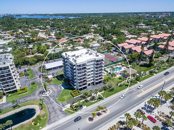 Timeless sunsets & sunrises never get old!! Best daytime views of the beach & nighttime views of the city captivates you from the comfort of your own living areas or from either of your two 24ft balconies. The prime NE location of this 7th floor Penthouse is sure to please! Updates include; newer A/C('15), granite & stone counters in the kitchen & baths. Sold furnished. This top floor residence also comes w/the best covered parking spot on the premises ~ Under the building for easy access to the lobby. Great proximity to the #1 beach in America for morning walks & spectacular sunsets. Amenities include: two private hard tru tennis courts, community swimming pool, BBQ grills, bike racks, & ample guest parking. If you're a part-time resident, you also have the option to lease w/weekly rentals. On-site management company too. Enjoy shopping & dining, in Siesta Key Village, by catching the FREE trolley right out front. With your added touches you'll enjoy the best living Siesta Key has to offer.....and its VIEWS!!!!