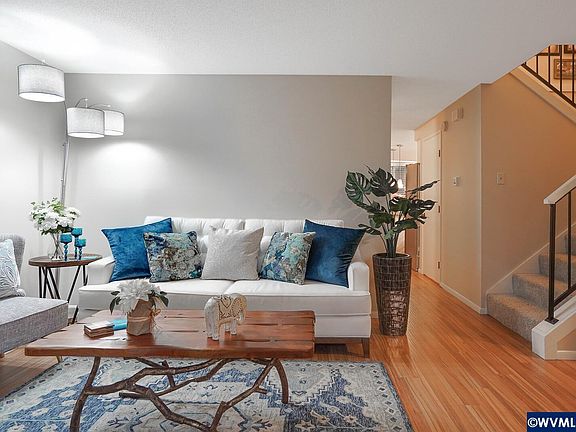 Great location. Extensive Remodel Summer of 2021, including new furnace, AC, water heater, stove, dishwasher, granite counters in kitchen, bathroom counters, cabinets, tile flooring interior paint. Gas fire place. Fenced backyard with patio and room to garden. Front one third of tandem garage has drywalled studio space, room for car and storage. Seller is an Oregon Licensed Real Estate Broker. HOA's include water, garbage, some exterior maintenance, common area grounds keeping.