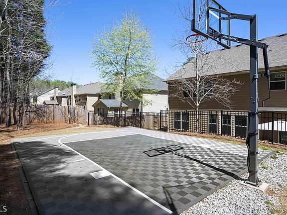 PRIME Crabapple location - walk to restaurants, nail salon, grocery stores and the gym! Intimate enclave of custom homes located on a single cul-de-sac street. Awesome lot that features a private NEW SPORTS COURT in the backyard!! Open floorplan with huge chef style kitchen with tons of granite counter space, fantastic butler pantry views to the fireside family room and breakfast area and access to the backyard. Separate dining room which functions as a home school, and separate guest suite with full bath complete the main floor. Second floor offers 4 bedrooms including the fantastic king-size master suite complete with giant walk-in closet and spa-like bath with separate soaking tub and shower, double vanity and nice size linen closet. Laundry room is conveniently situated between all the bedrooms. The 3rd floor retreat is the perfect theater room or gym or teen suite and offers extra storage closets! Quiet street and Blue Ribbon schools.