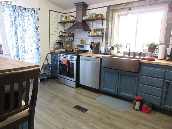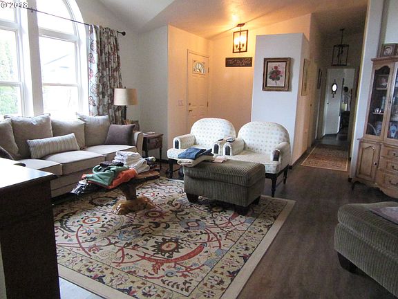 Very nicely updated manufactured home on over sized flag lot with covered patio, double car garage and RV Shed. Fully fenced yard with beautiful trees.
