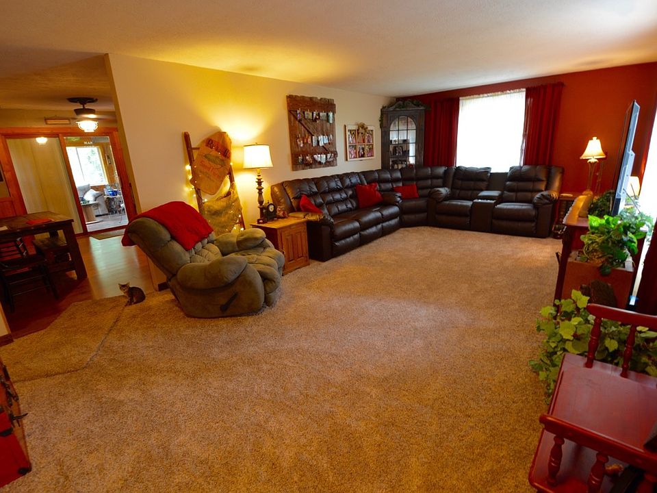 Beautiful secluded 4 bedroom, 2 bathrooms river oasis with close to 2000 sqft. All new inside includes furnace, A/C, windows, foam insulation, and appliances. 4 car garage covers entire lower portion of home perfect for all boats, toys, and storage. Enjoy evenings in hot tub while overlooking the river through wall to wall windows in porch/sunroom. Priced to sell. 159 ft of river frontage!