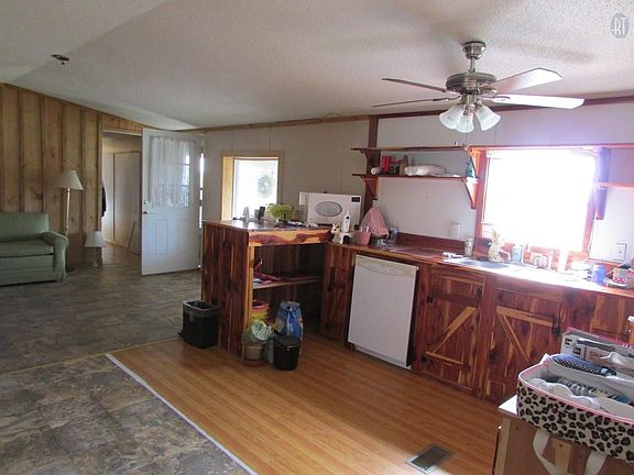 Mobile home with 4 rooms. Built on. 3BR/2BA. The 4th room can be a 4th bedroom, office, storage. Porch with view of a farm and pond.