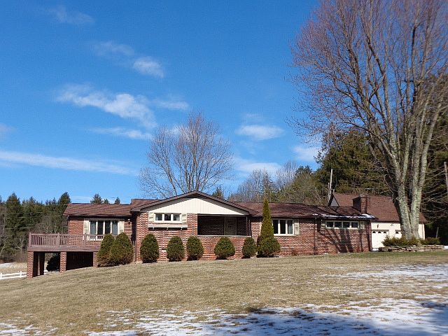 Immaculate Ranch home located just outside of town. Features 3 bedrooms, of which includes 2 master suites with baths, total of 3 baths, Kitchen/Dining Combo, sun room with gas logs, Hardwood and Ceramic Tile. Carpet only in sun room. Has Detached 995 sq ft Garage with workshop and finished office space above. Price includes home and 6.69 acres, but you can purchase home and 7.69 acres for $389,000.