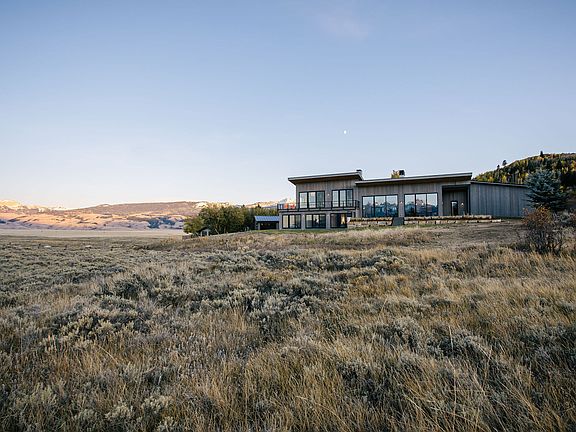 This home is a brand new construction in a Mountain-Modern style by local architect Rick Merrel. It features 10' and 12' sliding doors with unobstructed, panoramic views of the Tetons, Elk Refuge, Sleeping Indian and Yellowstone Valley. It features brand new appliances, furniture, AV equipment and art work of the finest caliber. A separate, 900 sq.ft. guest house shares the same vistas and offers exceptional privacy with every modern amenity including its own kitchenette and laundry. The entire property sits on one of 310,000 acres within Grand Teton National Park and serves as a migratory route for moose, elk, deer and other original locals. It lies just 4.4 miles north of the town square and 4.3 miles south of the airport (but well east of the flight patterns). For privacy, luxury, convenience and beauty, this home is unparalleled.