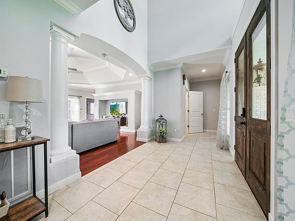 Immaculate home in sought-after Deer Run Subdivision. New stunning front doors welcome you into this beautiful home featuring 4 large bedrooms and 4.5 baths. Spacious bonus room AND 2 additional bedrooms and/or offices on second level. Vaulted and trey ceilings, rounded corners, and custom mill work throughout. Newly updated kitchen featuring BRAND NEW quartz counter tops, induction cooktop, tile back splash, and farmhouse sink with sensor-operating faucet. All new 2" cordless mini blinds throughout entire home. Second kitchen just off patio perfect for hosting large pool side gatherings. Custom salt system in-ground pool complete with deck jets, diving rock, tanning ledge, and beautiful travertine coping. Fenced in back yard and additional lot included.