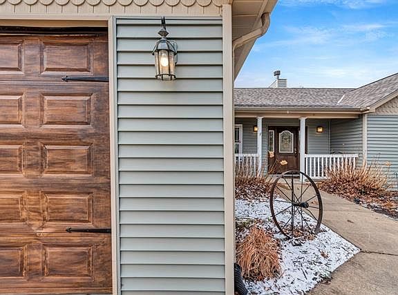 Beautiful 4 bed/3 bath Atrium ranch overlooking 8 +/- acres with amazing views may be just what you have been waiting for! Open floor plan with a sunny great room featuring Vaulted ceilings,solid hand-scraped wood floors, frieze carpet, beautiful stone fireplace & atrium spiral stairwell. Inviting eat-in kitchen that boasts custom cabinetry, granite countertops & a convenient breakfast bar connecting to the dining room with a sliding glass walk-out to the big back deck. The open floorplan includes a spacious main floor master suite with walk-in closet, double vanity, jacuzzi and separate shower. Convenient main floor laundry. The expansive finished walk-out lower level adds a family room, recreation room, bedroom, and sitting room.Roof and siding are brand new in 2019 with Transferable Warranty.