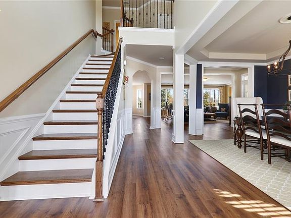 Nestled on a premium level cul-de-sac homesite, providing the perfect play area for children, this meticulously maintained light filled home boasts numerous premium upgrades throughout! Welcoming covered front porch invites you inside to the impressive 2 story foyer and on to the open design main level. New main level hardwood flooring continues to the stairway and upstairs hallway. Spacious family/great room with handsome fireplace, flanked by built-ins, opens to the gourmet's delight kitchen with walk-in pantry, granite countertops, tile backsplash, stainless steel