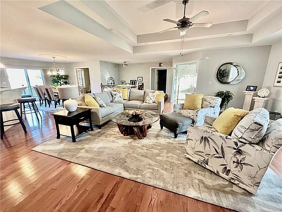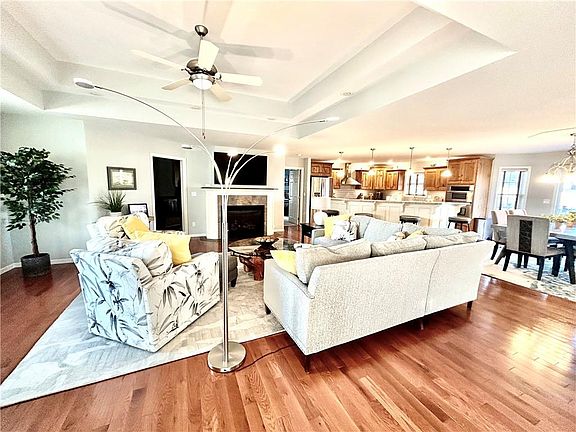 Stunning 5 bedroom 3.5 bath ranch home in a very desirable neighborhood. Spacious floor plan with open living room, kitchen and dining room. Kitchen has updated quartz countertops and backsplash. Gas fireplace in main floor family room. Master suite has large walk in closet, double vanity and separate entrance to backyard deck and newly installed patio area. Beautiful hardwood floors throughout main level. Finished lower level with two additional bedrooms and full bath. Enjoy the home theater room and bar area. This home has been well maintained and is a must see!