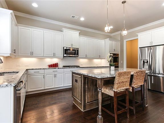 - Kitchen Features: Breakfast Bar, View to Family Room, Stone Counters, Kitchen Island, Pantry Walk-In, Cabinets White