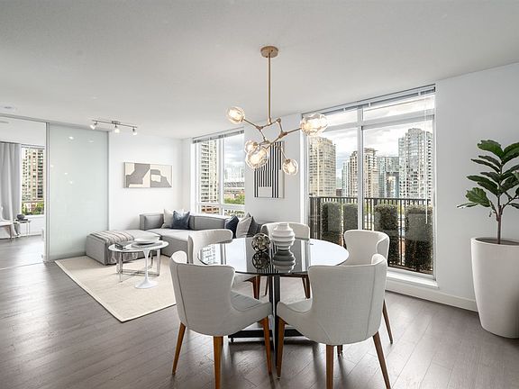 Spacious 2-bedroom condo with an excellent layout and expansive city views! This 1,050 sqft corner suit features south views that clear the heritage Yaletown conversion buildings below. This functional home has new engineered hardwood flooring throughout, plus new paint and fixtures. The kitchen features oak cabinetry, honed black granite countertops, and gas cooktop. Both bathrooms boast marble-topped vanities; the master bathroom has deep soaker tub and separate shower, plus a wall of windows. Second bathroom has an over-sized shower. Suite has den plus separate storage room. The 'Domus' was developed by the highly-regarded Qualex-Landmark and amenities include guest suite, caretaker, and well-appointed gym. 1 parking stall #82 & 1 storage locker #4-7 included. Pets and rentals welcome!
