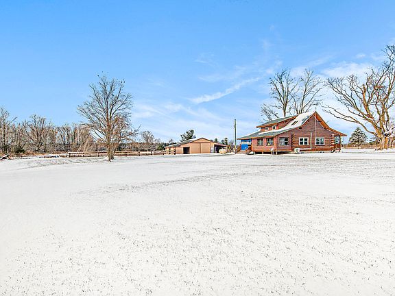 Escape to your very own country retreat with this stunning 4 BR, 2 BA log home on 20 breathtaking acres! Perfectly designed for recreation or hobby farming, this property offers endless possibilities. Featuring hi-tensile fencing for horses and two large pole barns equipped with water and electricity, it's ideal for equestrian enthusiasts or agricultural ventures. Enjoy the mix of open pastures, wooded areas, and a charming stream that meanders through, creating a serene and diverse landscape. Trophy whitetail deer frequent the property, making it a dream for hunting enthusiasts. Inside the home itself is a peaceful haven, with the master suite boasting a large walk-in closet, finished basement offers a rec area and lots of storage, the main level features open floor concept, cathedral ceilings, a 4-season sunroom off the dining area and covered front and rear porches. Updates in 2022 include a new roof & windows (lifetime warranty), furnace, mini-split A/C, water heater, butcher block counters, backsplash, sink, faucet, garbage disposal, and more. Plus, enjoy the convenience of high-speed fiber internet!