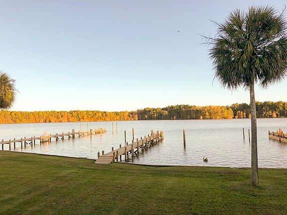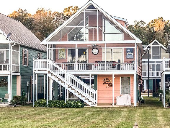 Waterfront gem, located in Goat Island, nestled in the gated community of The Pointe. Come check out the view from the spacious screened porch overlooking the water. This home features hardwood floors, room under the home for boat storage, and a dock! The Pointe also offers a boat ramp, fishing dock, an inground community pool, picnic area, and lawn care is included.