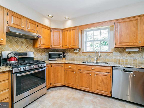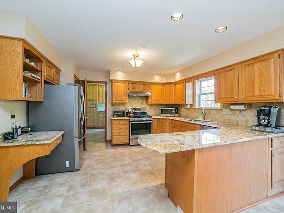 Meticulously kept farmhouse style home with a covered front porch and walkout finished basement in the very desirable neighborhood of Kingscote. Updated eat-in kitchen (2011) with granite countertops, ceramic tile flooring, tile backsplash, gas cooking, double sink, and stainless-steel appliances new in 2019 with transferable warranties. The kitchen opens to a breakfast area and the adjoining family room. Sliders from the breakfast area lead to a large elevated deck with steps to ground level. Back inside the living room and family room are separated by double French glass doors. The foyer offers hardwood flooring and natural wood trim which extends throughout the living room, dining room and family room. The master bedroom boasts an enormous office/study area, walk-in closet, and luxurious master bath with a soaking tub, walk-in shower and dual vanity. Three additional bedrooms (2 with newer wood laminate flooring) are serviced by a spacious hall bath with a dual vanity. The walkout basement is stylishly finished into a large recreation area with a kitchenette offering a glass tile backsplash, full bath with a walk-in shower, and sliders to a paver patio and spacious rear yard with well protected vegetable gardens that include a raised bed strawberry patch. The basement also boasts a tremendous finished workshop also with sliders to the rear yard plus a large storage area - a handyman's dream basement! Fenced in rear yard (2019), newer shed (2019), new Trane HVAC with 10 yr transferable warranty (2018), gas hot water heater (2018), fresh paint (2019), new carpeting (2020), central vac, security system, oversized 2-car garage, and warm neutral decor. Incredibly low utility bills! Great location, easy access to commuter routes, schools, shopping, parks and recreation. Award winning Souderton School District.