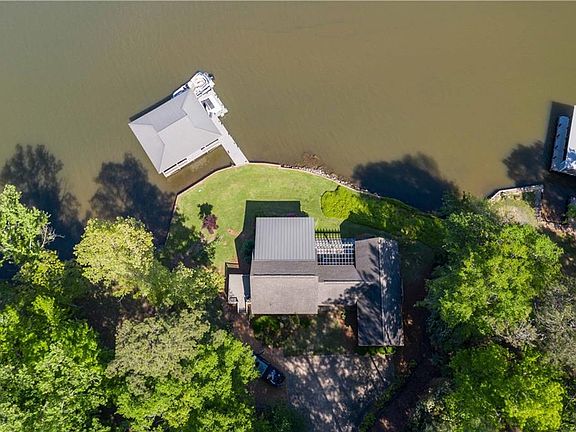 Located along the picturesque shores of Lake Harding, this residence offers awe-inspiring panoramic views. Upon arrival, you'll be welcomed by a welcoming foyer guiding you to expansive living areas crafted for both indoor and outdoor pleasures, featuring a stone patio boasting fantastic views and a 3-bay boathouse. The kitchen boasts refined granite countertops and contemporary stainless-steel appliances. The luxurious master suite has tranquil water views, walk-in closets, double granite vanities, a custom-tiled shower, and a spacious garden tub. The living room provides captivating 180-degree water panoramas, enhanced by hardwood and walls of windows. Furthermore, a thoughtfully designed laundry room provides built-in cabinetry for added storage convenience. This property serves as a truly remarkable lakeside haven, offering a harmonious blend of natural serenity and cozy comforts.