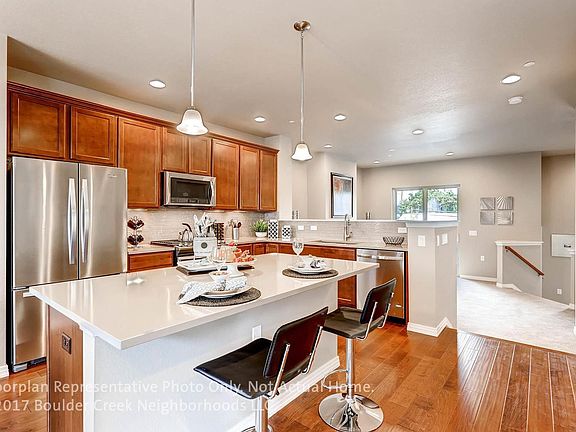 Quick Move In Home Available at DELO! Contemporary, Urban, Low-Maintenance Townhome designed to fit your life. At DELO, you are always within walking distance to Historic Old Town Louisville. The lower floor has a large oversize 2 car garage with room for storage and a ground floor bedroom with en suite bath. On the main floor, experience the open kitchen that includes a large island, added pantry storage, abundant can lighting with appliances. The living room offers high ceilings and large windows for loads of natural light. Upstairs you will find a study/loft area, another large bed room and bathroom and then walk into the spacious master bedroom suite. Area amenities include a 2 acre neighborhood park, Coal Creek Trails and the newly opened Gateway to Main Street. Schedule your appointment today! Move In October 2018