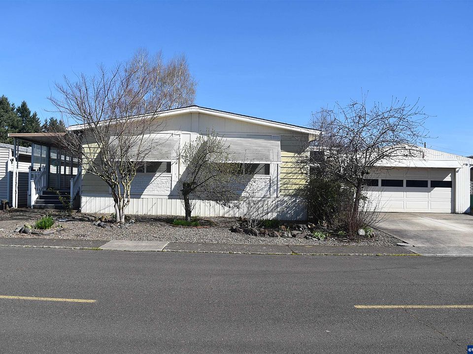 Spacious home in 55+ community close to shopping, transportation, medical, & ent. in Keizer. Lrg FR, FDR w/built in buffet. Nice open kit w/island that includes range & breakfast bar. FR just off kit w/slider leading out to ¾ enclosed sunroom. Lrg primary bedroom w/soaking tub. Laminate flooring throughout most of home & carpet in bedrooms replaced 3/2024. Detached 2 car garage w/storage & 2 workshop areas. Park amenities: pool, clubhouse, event space. $1215 Rent includes garbage. Water billed separately.