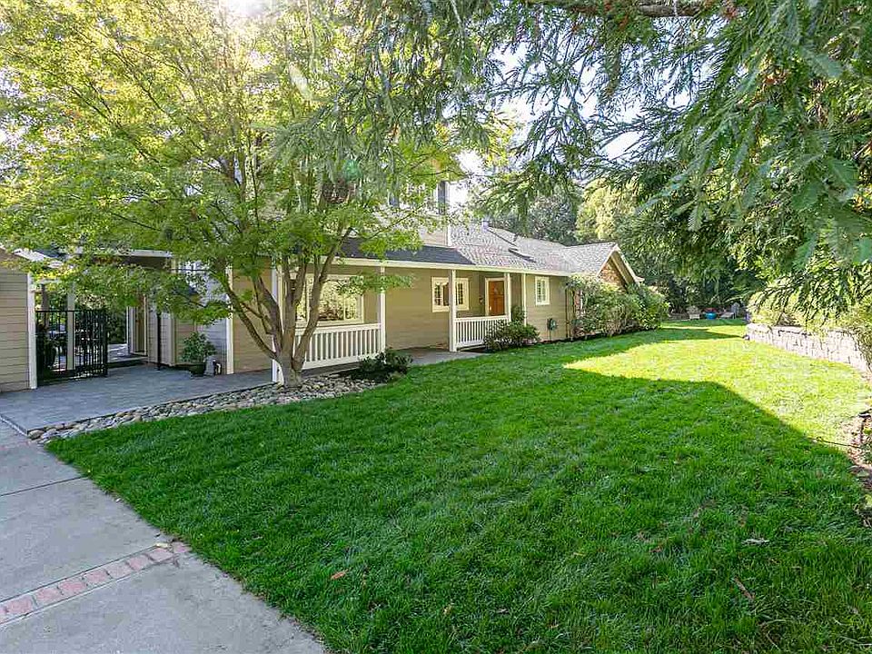 Private, corner property in one of Lafayette's more coveted neighbourhoods off of Upper Happy Valley Road; .61 acres tucked behind mature trees and foliage. Featuring approx. 2680 sf of light-filled living space with 4BD/3BA in the main house and approx. 500 sq.ft.detached guest house w/1 bath with fireplace, wet bar, built-in cabinetry, vaulted tongue and groove ceiling, access to private outdoor space. An additional 10x12-foot detached studio w/French door entry, vaulted ceiling, storage closet, and laminate counter...ideal for art or yoga studio and/or work and learn-from-home space. Meticulously maintained, the mostly single-level living floor plan showcases hardwood floors, new carpet, crown moulding, fresh interior paint, skylights, plantation shutters, a travertine tile entry, dual pane Milgard windows, updated kitchen, and much more! Many outdoor venues to entertain, play, and relax: inviting pergola, gather around the fire pit and spa, Trex & IPE decks, raised veggie beds!