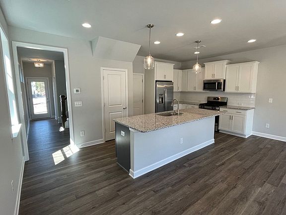 Bright and Beautiful almost new townhome located in Holding Mills Townhomes within minutes of Joyner Park, Southeastern Baptist Theological Seminary, and downtown Wake Forest. Check out this lovely 3 bedroom, 2.5 bath townhome with a single garage, featuring granite countertops, tile backsplash, pendant lights, recessed lighting, LVP flooring, walk in shower, dual vanity, pantry, walk in closet, covered front porch and back patio. Kitchen GE appliances include a Gas Range, Over the Range Microwave/Vent Hood, Dishwasher, and Stainless Steal Refrigerator. Upstairs has a dedicated laundry room with a Whirlpool Washer & Dryer. Window blinds both down and upstairs for privacy.