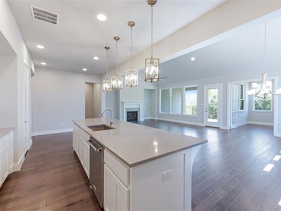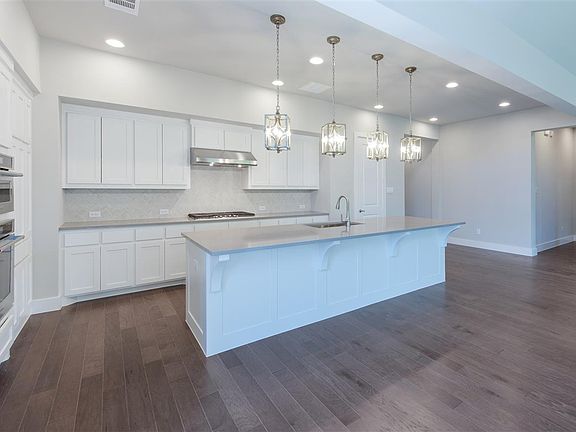 Luxury NEWAshton Woods homejust11 miles fromLegacy West, minutes from US-75 andwithin walking distance to shopping and dining at the Shops at Watters Creek in Allen! This brick and stone homefeatures several upscale finishesthroughout including hardwood flooring,Quartz countertops, programmable thermostats, energy efficient lighting, 10' ceilings, a gas hot water heater, vaulted ceilings and LED disc lights. The elongated foyer opens to three secondary bedrooms complete with walk-in closets. At the heart of the home, thekitchen-dining-family room is a great open entertaining space. The family and dining room features a vaulted ceiling and a gas tilefireplace. An office, with double-door entry, gives anyone working from home a little more privacy. The kitchen is both functional and beautiful with a spacious eat-in bar top island, Whirlpool stainless steel built inappliances, pot and pan drawers, tray dividers, pull-out waste basket, 42" white cabinets, light tile backsplash andpendant lighting. The master suite features a solid surface countertopvanities, a freestanding tub, frameless glass shower with seatand a walk-in closet. A door from the master closet to the utility room makes doing laundry a breeze. A 3-car tandemgarage,backyard covered patio, 6 panel8' front door, ceiling fans and dual pane windowsput the finishing touches on this new