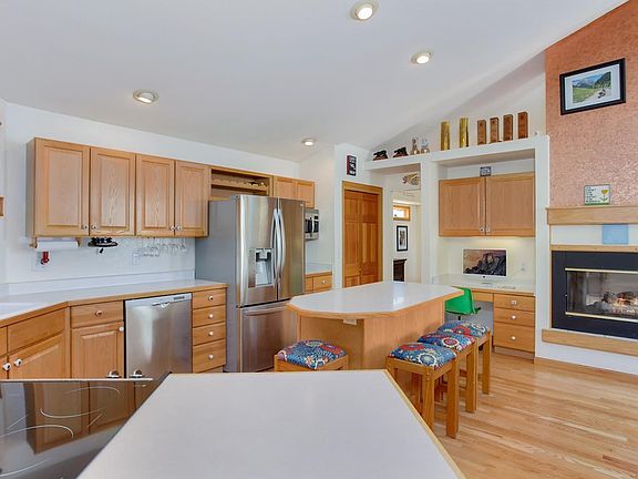 Exceptional, custom designed, open layout 4000+ sq ft home, nestled in amazing lush CO landscape w/ breathtaking views of North Table Mtn in Golden. Just steps from Tucker Gulch Greenbelt, Welcome Home to 5 beds/3 baths Mesa Meadows beauty w/ finished walk-out bsmt, main level master retreat and soaring vaulted ceilings w/ skylights. Newly renovated (2018) Entertainer’s kitchen, with beautiful slab granite, extended island w/ added cabinetry, stainless appliances including wine cooler, 3-sided fireplace and charming deck w/ remote controlled custom awning for full view enjoyment. Updates include, new paint throughout, refinished hardwood floors, new carpet. Updated lighting fixtures throughout; Updated cabinetry, lighting, bath fixtures and new granite countertops added in all 3 baths; main level laundry. Spacious Garden level w/ rec area and pellet fireplace + guest suite and tons of storage! Custom window coverings, newer windows, New furnace and new roof(2018). Easy access to new light rail and miles of trails along Cressman Gulch that goes all the way to downtown Golden!