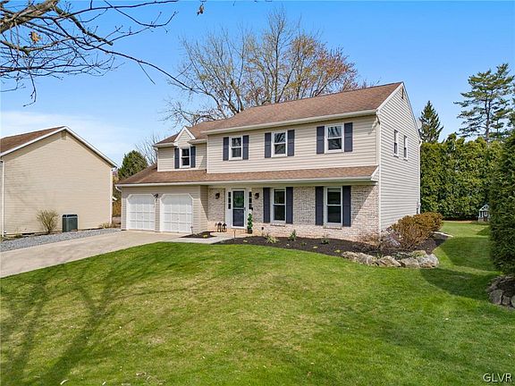 Welcome to 1055 Oldstone Road! Immaculate 4 bedroom/2.5 bath open concept layout with a backyard oasis located in the highly desirable Saddlebrook development of Salisbury Township. Completely redesigned and renovated from top to bottom, this home features 5” plank white oak hardwood floors throughout the first and second floors. A stunning gourmet kitchen offers premium white shaker cabinets, quartz countertops, tile backsplash with marble inlay and pot filler, and a massive island perfect for entertaining. The kitchen and den open to 1000+ sq ft paver patio with hot tub, large pavilion (w/ gas line & electric), fire pit sitting wall with lighted pillars, and screen wall for grill and smoker. The second level includes the primary ensuite with walk-in closet, heated porcelain tiled bathroom floor, and Carrara marble accents in the oversized shower. Plus three additional bedrooms, a hallway bathroom with jetted tub, and conveniently located laundry room. The recently renovated basement adds over 700 sq ft of living space, plus a separate storage room. Ample attic storage with subflooring and pull down ladder access. Two-car garage with epoxy coated flooring and storage cabinets. Walking distance to schools, parks, and swimming. Close to Lehigh Valley & St. Luke's Hospitals and I-78. This home has it all - don’t miss out! ******MULTIPLE OFFERS RECEIVED******