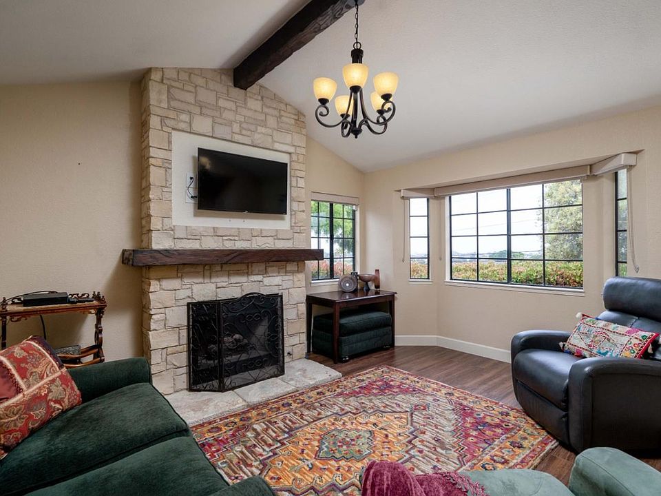 Come and see this move in ready adorable 2 bedroom 2 full bath condo with views of the bay. As you walk into the livingroom you will notice the beautiful hardwood flooring and sandstone fireplace. There is high beamed ceilings. Turn around and enjoy the view of our Monterey Bay! There is a quaint dining area off of the kitchen with high end appliances and a sliding door to your private patio to enjoy your morning coffee or a BBQ with friends. Down the hall you will find an indoor laundry area. There are two full baths that have both been remodeled. The hall bath has a stand up shower nicely tiled in. The primary bath gives you a spa like feeling with a soaking tub, a stand up shower, and its own TV. There is a sliding door from the primary bedroom to its own patio. This is a must see. Don't miss it! No sign on property.