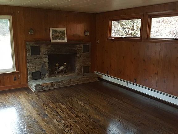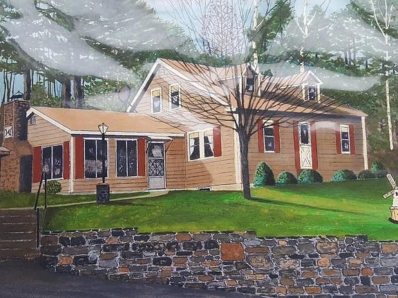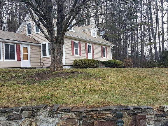 Charming country cape set on 2 acres. Walk into a nice sized living room with a beautiful stone fireplace. This home offers enough space for a large family with four bedrooms and ample living space. You will find a newly remodeled bathroom and freshly refinished hardwood floors. With a large yard and the sounds of a babbling brook you'll want to spend time outside. There is a large two car garage with plenty of storage upstairs. Nice country setting!