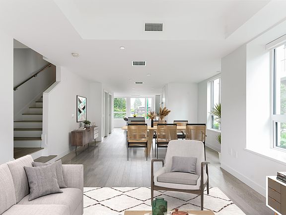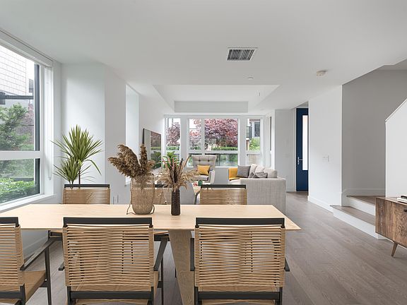 Modern 2 Storey Townhouse with private roof top patio in the heart of prestigious Edgemont Village. Live steps to everything you desire including shops, restaurants, groceries, amenities all at your doorsteps. This stylish townhouse has 3 bedrooms, 3 bathrooms and a spacious private rooftop patio perfect for entertaining. Open concept kitchen with a marble backsplash, high end Bosch appliances, integrated appliances and kitchen island. Main bedroom boasts a built-in walk-in closet and spa-like ensuite. Amenities include a gym, party room, large courtyard with beautiful landscaping and an outdoor common area for BBQs just steps from your home. 2 side by side parking and easy to connect EV! 1 Storage. Pets & Rentals Allowed. This is a must see in North Vancouver's most sought after location!