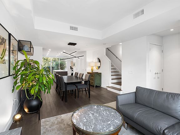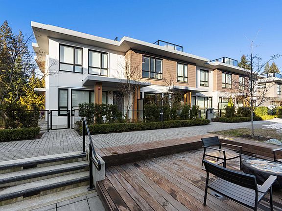 The Connaught-Edgemont Village.Spacious 1,430 sf, 3 bed/3 bath concrete townhome w/ lovely front patio and spacious rooftop terrace. Totally upgraded home unlike any other in the development. Featuring a one of a kind colour scheme of dark hardwood floors & cabinetry accented w/ quartz counter tops & marble backsplash. Open and bright w/ designer paint & lighting, big windows and sliding doors to outdoor space. Gourmet kitchen, integrated Bosch appliances w/ 5 burner Gas cook-top, custom cabinetry, wide plank H/W floors, heated bathroom tile, A/C and storage inside & underground. Dreamy master retreat w/privacy blinds, custom ensuite & walk thru closet. 550 sf of private outdoor space for BBQ & entertaining. Upgraded in every. A must see! 2 spacious parking w/2 EV car chargers! And more..