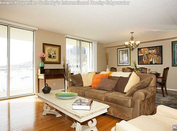 One of the few southeast downtown NYC facing 1 bedrooms to come available in years. This model-like 1,074 sq. ft. condo is completely renovated with an opened eat-in kitchen and wrap around bar + counter space, granite counters, custom cherry cabinets, custom lighting throughout and cherry hardwood floors throughout. Add to this the renovated baths and there is great value here. Most of all though, this spacious home has the coveted NYC, Marina and Hudson River View. Watch the ferry next door come & go from any room or from your over-sized terrace. Admiral's Walk has every amenity available and is resort style living with a waterfront pool, tennis, gym, 24 hr concierge, + free parking - all in this desirable, luxury gated community just adjacent to the New York Waterway Ferry and the Edgewater Marina. For more information about this listing, please contact Lois Fein, (201) 741-2175 at Prominent Properties Sotheby's International Realty-Edgewater, (201) 840-8898