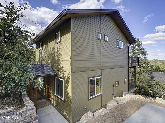 This is the hidden gem you have been waiting for! 3 YEAR OLD HOME is Just off White Spar Road, 1.5 miles from downtown Prescott. Watch the sun set on panoramic views on your private deck! This quiet neighborhood has no HOA and resides on a privately maintained dirt road with almost no traffic. With a footprint just over 1150 square feet this this cozy home is easy to maintain. Each bedroom has an attached full bathroom. The vinyl plank floor has a lifetime warranty and is move in ready for you to enjoy the upcoming fall temps Prescott is famous for. Granite kitchen counter tops, recessed lighting throughout, all appliances included as listed. This area is known for its wildlife and beautiful views . . .did I mention the views. Enjoy for yourself or income property! Come take a look today!