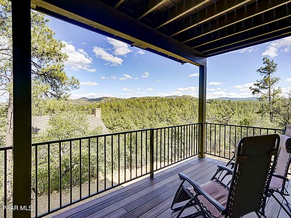 A Prescott getaway in the Pines! 1.5 miles from downtown Prescott. Watch the sun set on panoramic views on one of two private decks! A quiet neighborhood with no HOA and resides on a privately maintained dirt road with almost no traffic. With a footprint just over 1150 square feet this cozy home is easy to maintain. Each bedroom has an attached full bathroom. The vinyl plank floor has a lifetime warranty. Granite kitchen counter tops, recessed lighting throughout, all appliances included as listed. This area is known for its wildlife and beautiful views . . .did I mention the views. Enjoy for yourself or as an income property! Come take a look.