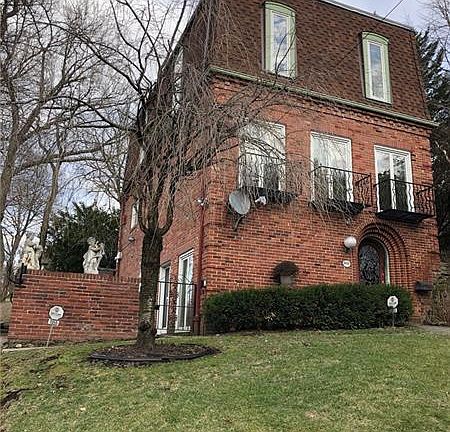 Welcome to the home with cherub statuary dancing on top of the patio walls. Artist Henry Koerner built the home and lived here when he was an Artist-in-Residence at the PA College for Women (now Chatham University). He designed the front stained glass door of his wife and daughter. This home features three levels of living space beginning on the lower level as you enter, perfect for a family room, office or studio. A wall of tall windows and French doors open to a patio, built-in-bookcases and ceramic flooring. The main level features an open floor plan with large widows and high ceilings. A set of French doors open to brick patio and private backyard setting. Fully equipped kitchen with Sub-Zero refrigerator. Three bedrooms and two full baths on the upper level with lovely hardwood on main and upper floors. Conveniently located to bus stop at 5th and Negley. Only1/5 miles to universities/medical centers in Oakland. Walk to shops, restaurants in Shadyside. Colfax School.