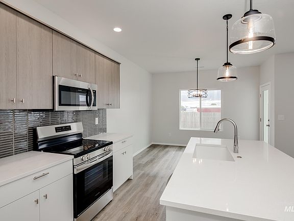 This brand new home located in vibrant Mountain Home, Idaho welcomes you with open arms. Experience the luxurious lifestyle you deserve with the Capri Bonus 1848! Walk through the defined entryway featuring coffered ceilings and be welcomed by the extra-wide halls & 9ft. ceilings throughout that lead you to the two bedrooms. The stunning main bathroom includes an extended vanity countertop. The open-concept great room showcases plenty of windows and light. The kitchen comes with stainless steel appliances and stylish solid surface countertops, adding both functionality and aesthetics to the kitchen. Relax and enjoy yourself in the posh primary suite and en suite bathroom - a perfect escape. Don't miss the bonus room upstairs - an extra space for work, play, or entertainment. Make this dream lifestyle yours today! Photos are of the actual home!