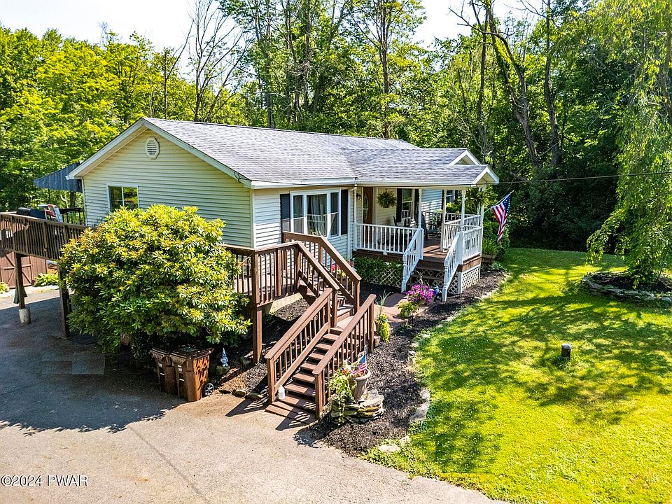 Lake Ariel location with NO dues. All you Rancher Buyers take a look . Cozy Covered deck overlooks full sized private back yard and in ground pool built for FAMILY FUN. Hardwood and Tiles provides easy care and maintenance. Bedrooms are ample sized with closet space. Lower level offers a laundry area and Great Family Room with full bath to rinse off after a full day at the pool. Capture this one before it gets AWAY!
