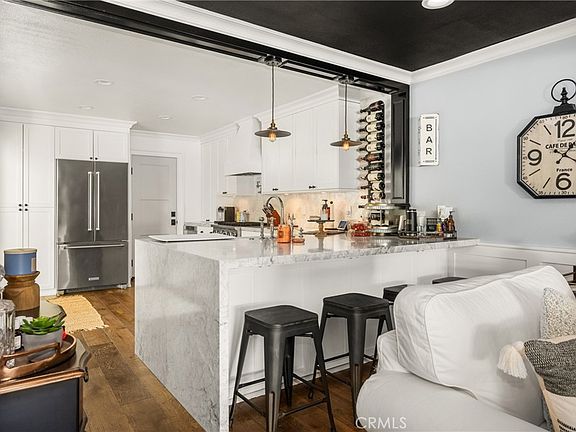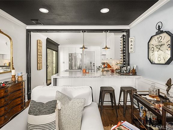 Experience luxury living in this stunningly remodeled condo offering a perfect blend of style, comfort, and functionality. The upgraded chef's kitchen features soft-close cabinetry, Carrara Bianca Suprema marble counters with a waterfall edge, eat-on bar, new stainless-steel appliances, and a farmhouse sink ideal for cooking and entertaining. Enjoy European oak engineered hardwood floors throughout, complemented by custom white oak ceiling beams, a walnut built-in desk, and solid core doors that enhance both beauty and sound insulation. Both bathrooms have been thoughtfully updated with marble floors, new fixtures, and designer finishes. Every detail shines from the custom molding and paneling to closet organizers in each bedroom and LED recessed lighting in every room. Comfort is effortless with a brand-new HVAC system (A/C and furnace) and new water heater providing modern efficiency and peace of mind. Move-in ready and ideally located in the heart of Tustin, this exceptional home offers sophistication, comfort, and convenience all in one.