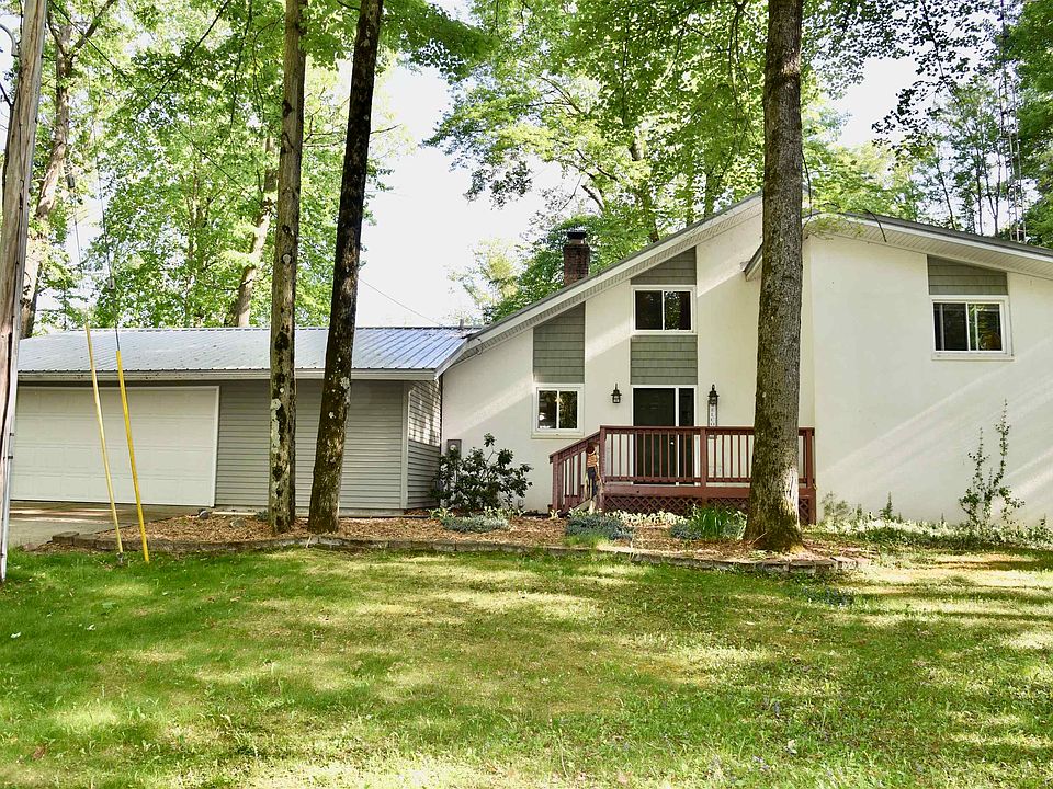 Welcome to this charming 3-bedroom, 1.5-bath home, nestled on an expansive 4.8-acre lot. With 2,000 square feet of living space, this property boasts a beautiful pond and serene wooded areas perfect for various outdoor activities. Inside, you'll find a spacious master bedroom and an inviting open-concept layout ideal for modern living. The insulated garage comes with its own heating system, ensuring comfort year-round. Topped with a durable metal roof, this home combines rustic appeal with practical amenities. This home is a perfect retreat for nature lovers and families alike.